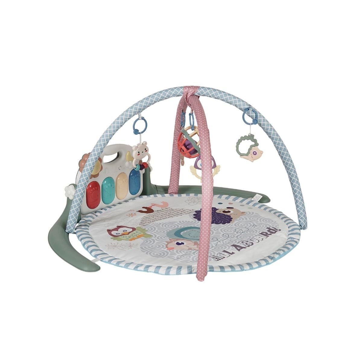 Bebeklerin ilk aylarından itibaren en sevdiği aktivite alanı olan Prego Vegas Oyun Halısı 6056, konforlu yapısıyla Bebeym kalitesini evinize taşıyor. Şık tasarımıyla dikkat çeken Prego Vegas Oyun Halısı 6056, üzerindeki sallanan oyuncaklar sayesinde bebeklerin el-göz koordinasyonunu geliştirir. Prego Vegas Oyun Halısı 6056 ile minikler hem karın üstü egzersizlerini yapabilir hem de sırt üstü yatarken eğlenceli figürleri izleyebilirler.