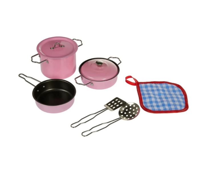 Tüm parçalar metal malzemeden yapılmıştır ve gerçek tencereler ve tavalar gibi görünürler.