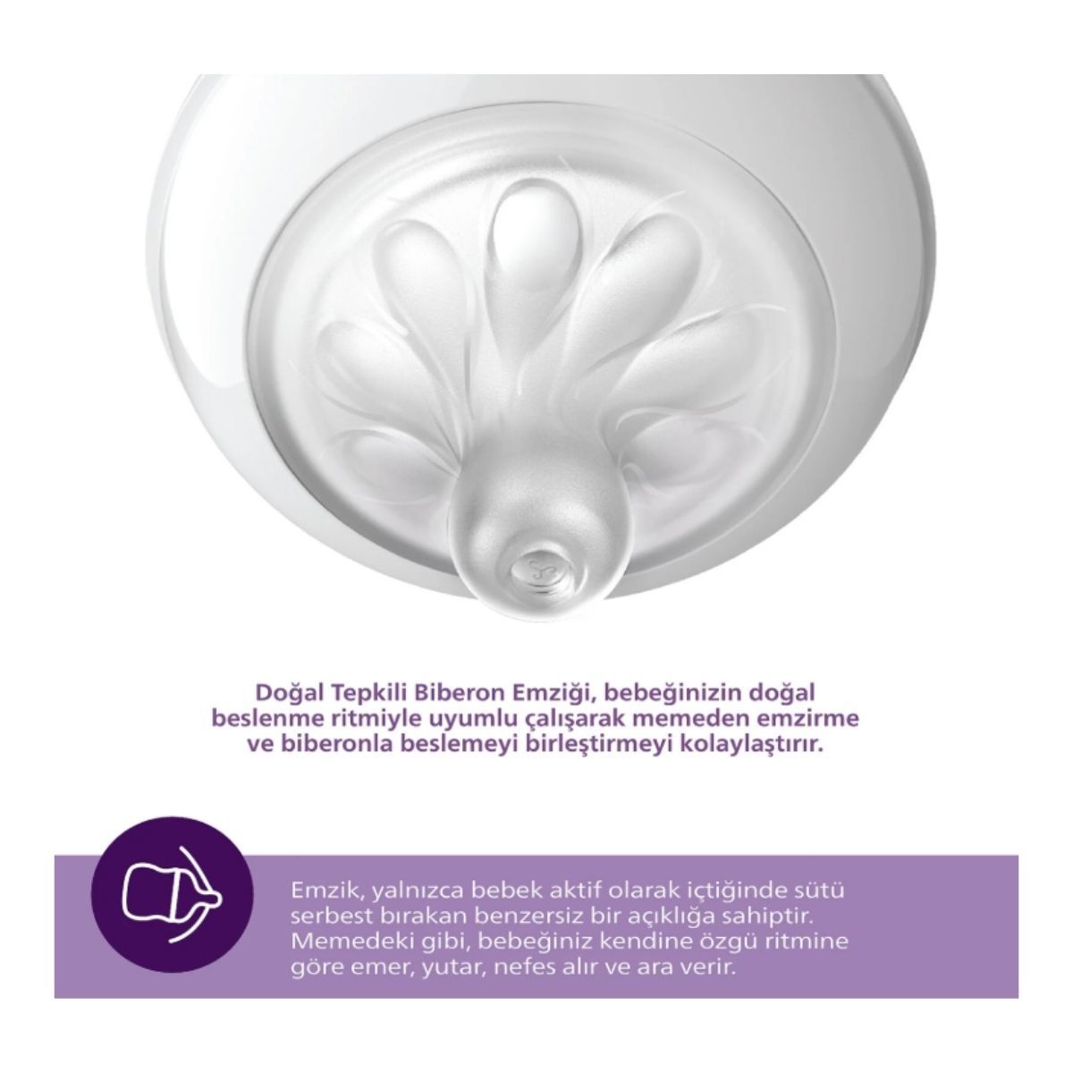 Doğal Tepki Teknolojisi: Bebek aktif olarak emmediği sürece süt akışı olmaz, bu da doğal bir beslenme deneyimi sunar.