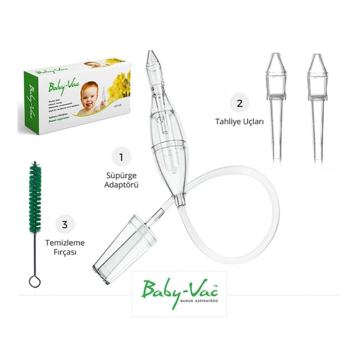 Bebeym.com olarak, bebeğinizin sağlığı ve konforu için en iyi ürünleri sizlere sunmaya özen gösteriyoruz. Baby-Vac Burun Aspiratörü ile minik yavrunuzun rahat bir nefese kavuşmasına yardımcı olun! Keyifli alışverişler dileriz!