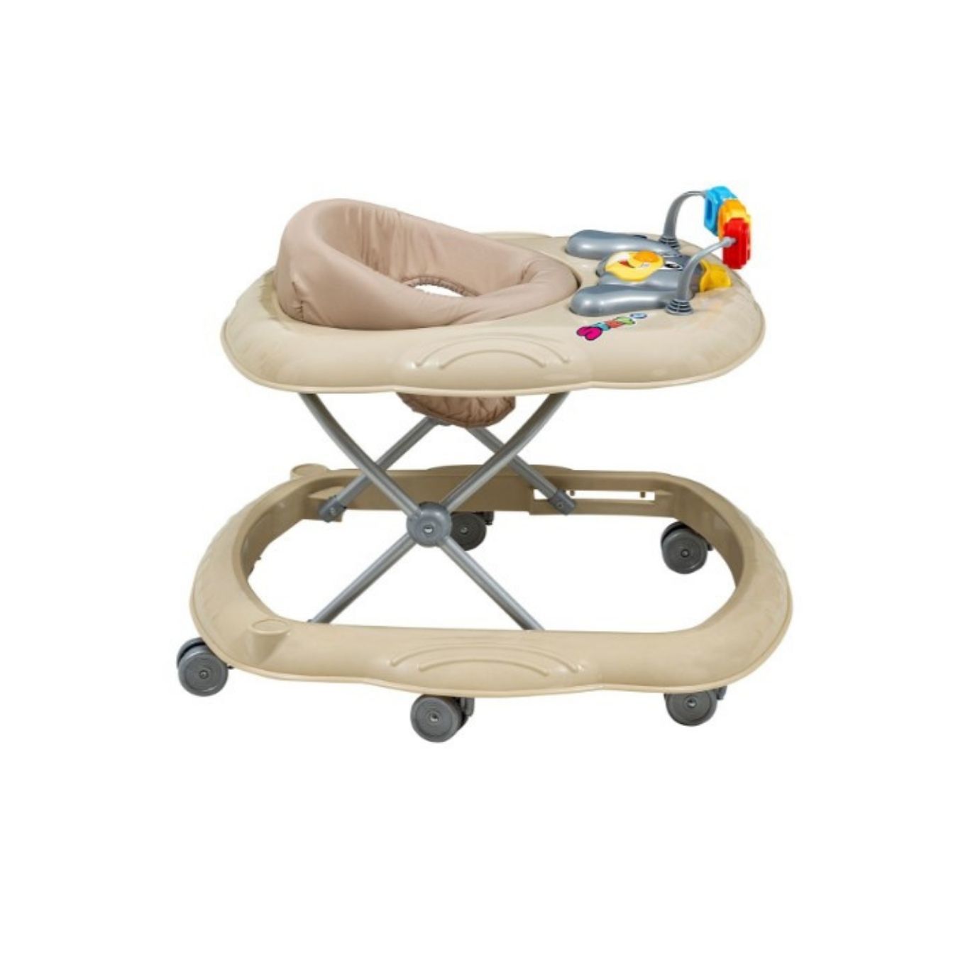 Bu şık kahve rengi yürütecin ön panelinde bulunan müzikli ve oyuncaklı aktivite merkezi, bebeğinizin duyusal gelişimini desteklerken ona eğlenceli vakit geçirme imkanı sunar. Farklı sesler, ışıklar ve renkli oyuncaklar bebeğinizin ilgisini çeker ve yürüteçte daha uzun süre keyifle vakit geçirmesini sağlar. Bebeym.com ile bebeğinizin öğrenirken eğlenmesine yardımcı olun!
