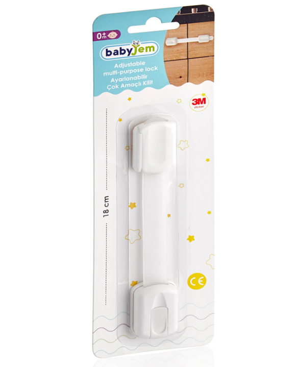 - Babyjem Ayarlanabilir Çok Amaçlı Kilit, çocukların dolap kapağı, çekmece, buzdolabı, büfe veya sandık kapaklarını açmalarını engeller.