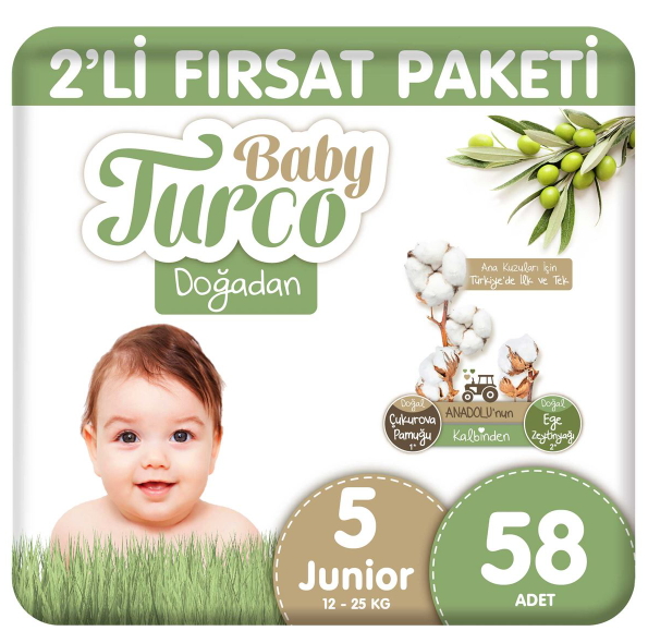 Babyturco Doğadan 5 numara külot bez, hem doğallık hem ekonomik avantaj arayan aileler için harika bir seçimdir. Bu paket toplam 58 adet külot bez içerir.