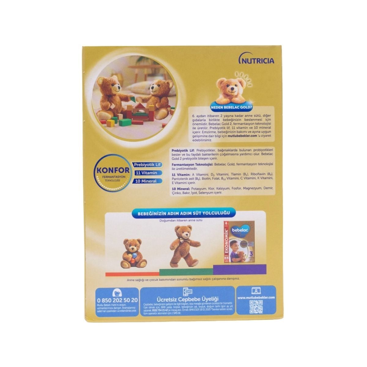 Bebelac Gold serisi, bebeklerin gelişim ihtiyaçlarına uygun bitkisel yağlar ve balık yağı karışımı ile formüle edilmiştir.