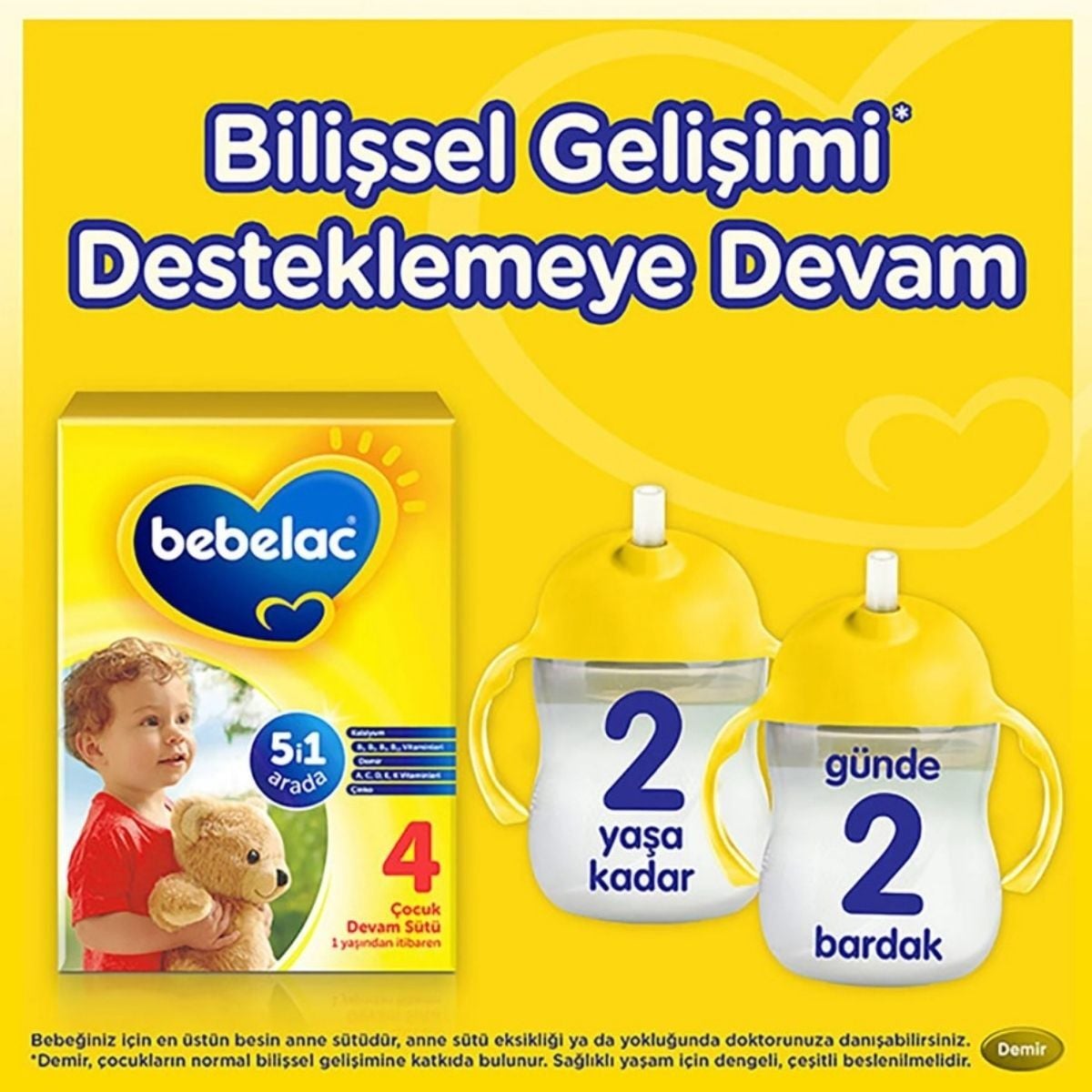 Bebeym Hatırlatması: 1 yaşından sonra devam sütü, çeşitlendirilmiş bir beslenme planının parçası olarak verilmelidir. Günlük menüde taze sebze, meyve ve protein kaynaklarına yer verilmesi önerilir.