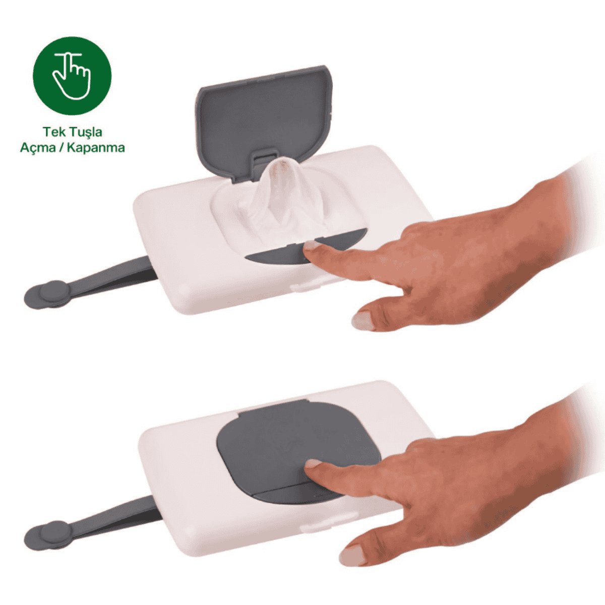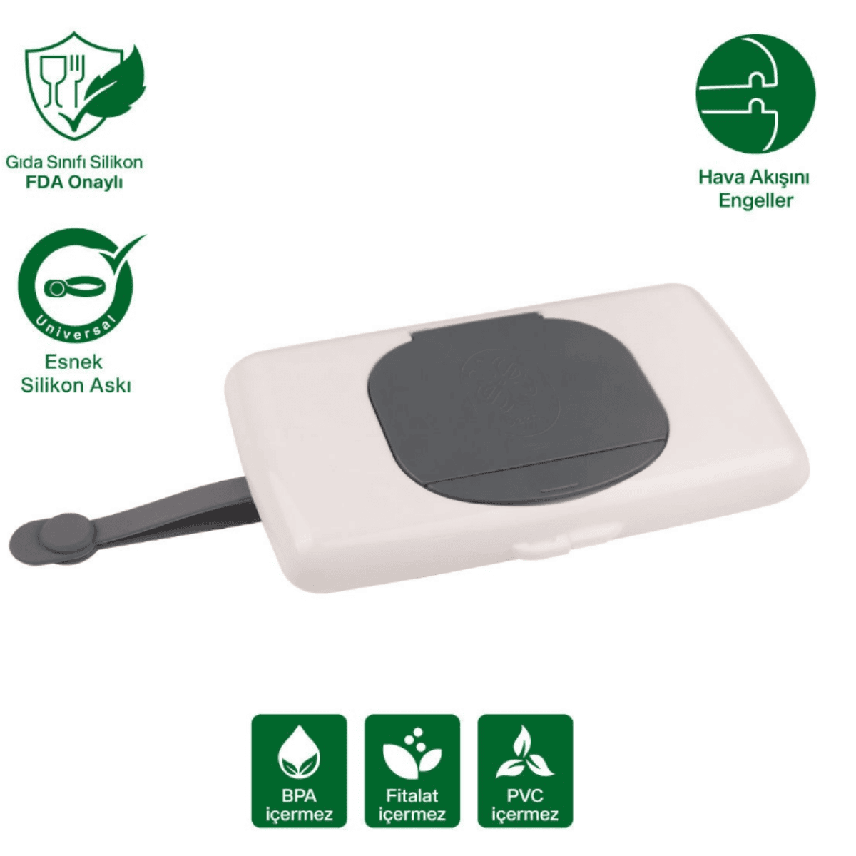 Dayanıklı ve sağlığa zararsız malzemelerden üretilmiş olan bu kutu, bebeğinizin cildine zarar vermeyecek şekilde tasarlanmıştır. Kompakt yapısı sayesinde az yer kaplar, ancak içerisine birçok ıslak mendil alabilir.