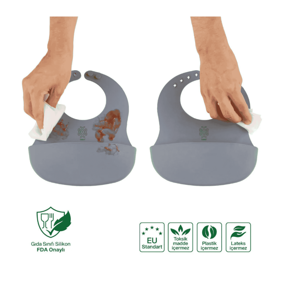 Been Silikon Mama Önlüğü, BPA ve zararlı kimyasallar içermez; bebeğinizin sağlığına tamamen dosttur. Kolay temizlenebilir özelliğiyle sadece silinerek ya da bulaşık makinesinde yıkanarak hijyenik hale gelir.