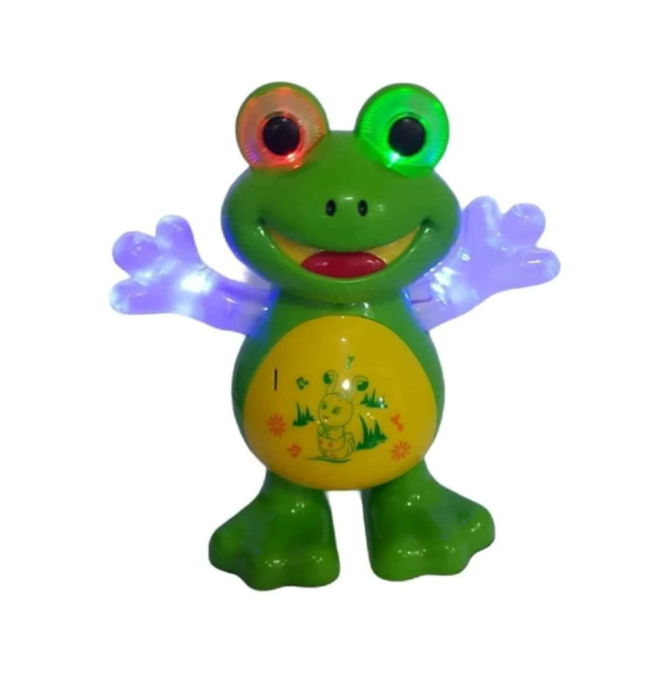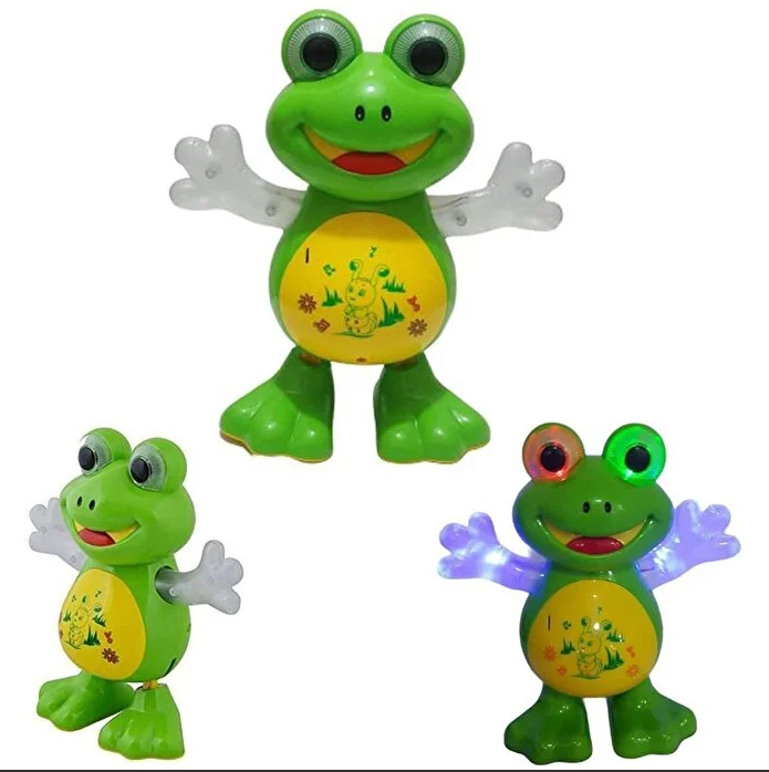 Bu eğlenceli kurbağa oyuncağı, canlı renkleri ve hareketli yapısı ile çocukların dikkatini çeker. Kurbağa, müzik eşliğinde çeşitli dans figürleri sergileyerek çocukların ritim duygusunu geliştirir. Hareket ettikçe şarkı söyleyen ve dans eden bu oyuncak, özellikle küçük yaştaki çocukların motor becerilerini ve el-göz koordinasyonunu güçlendirir.