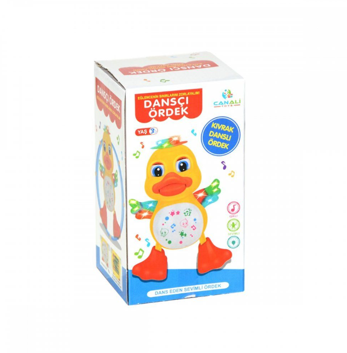 Bu eğlenceli ördek oyuncağı, canlı renkleri ve hareketli yapısıyla çocukların dikkatini çeker. Ördek, müzik çalmaya başladığında ritmik hareketlerle dans etmeye başlar ve neşeli şarkılar söyleyerek çocukların müziğe olan ilgisini artırır. Özellikle küçük yaştaki çocukların motor becerilerini ve el-göz koordinasyonunu geliştirmek için harika bir seçenektir.