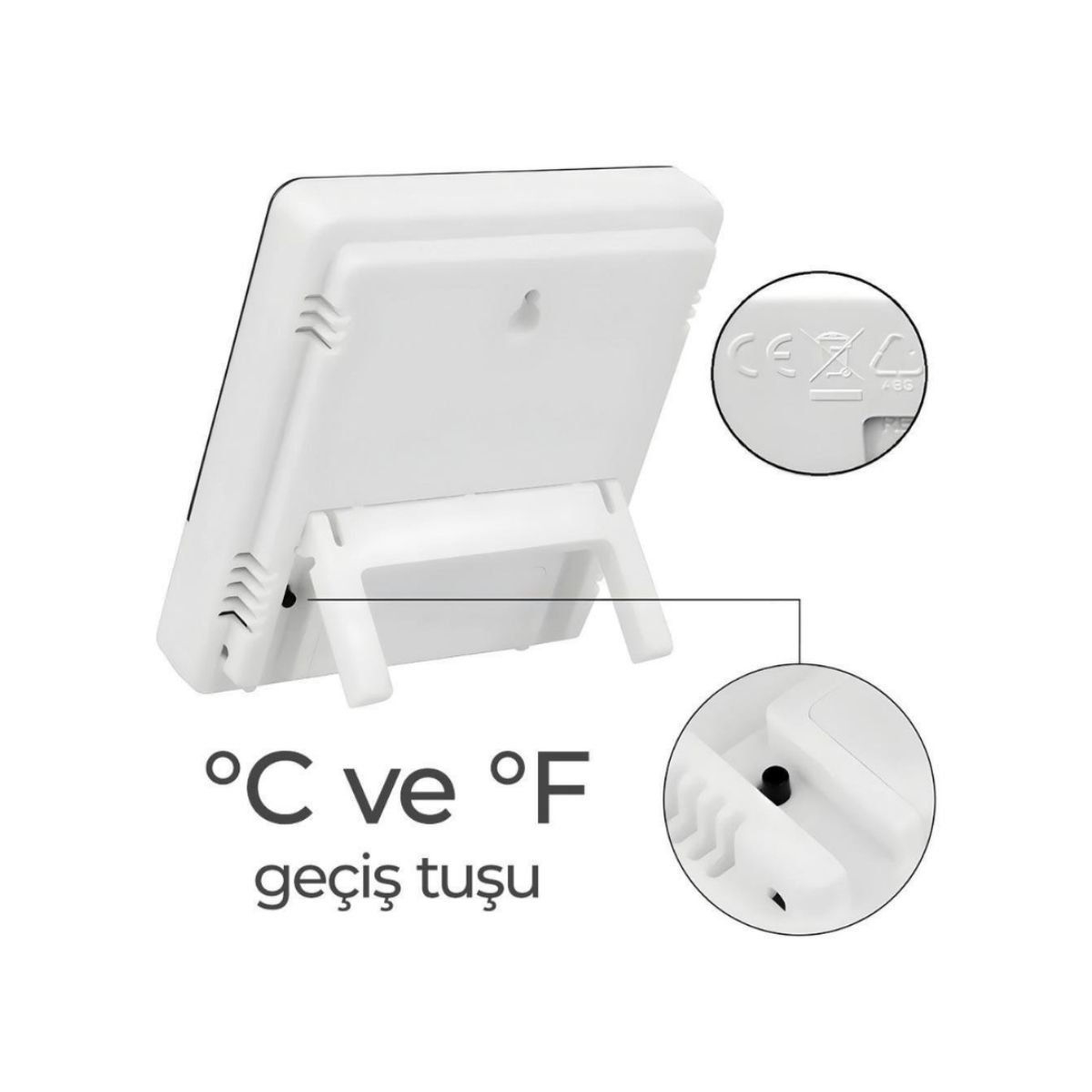 Sadece sıcaklık ve nem ölçümü yapmakla kalmayan bu cihaz, aynı zamanda şık bir masa saati olarak da kullanılabilir. Net rakamları sayesinde zamanı kolayca takip edebilirsiniz. Alarm özelliği sayesinde ise belirlediğiniz saatlerde nazikçe uyarılırsınız. Bu çok yönlü özellikler, cihazı evinizin her köşesinde kullanışlı bir yardımcı haline getirir.