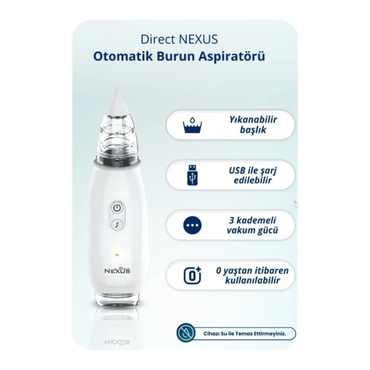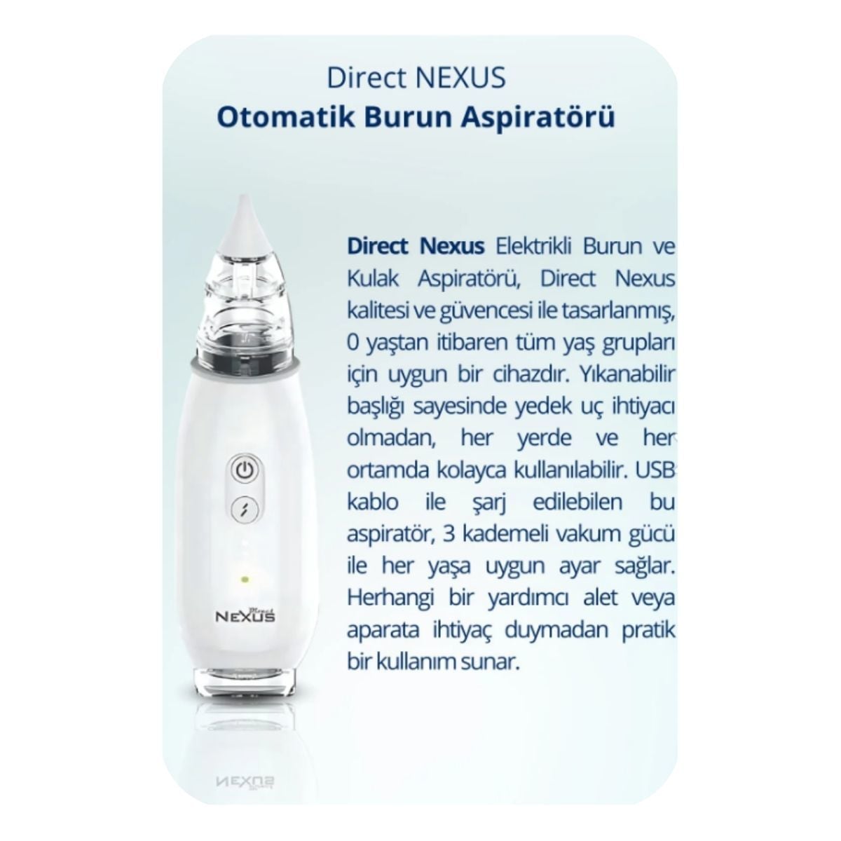 Değerli ebeveynler, bebeklerinizin burun tıkanıklığı yaşadığı zamanlarda onlara en nazik ve etkili yardımı sunmak sizin için ne kadar önemli biliyoruz. Bebeym.com olarak, bebeğinizin hassas burnunu tıkayan mukusu güvenle ve kolayca temizlemenize yardımcı olacak Direct Nexus Burun Aspiratörü'nü sizlere sunmaktan mutluluk duyuyoruz! Bu pratik aspiratör, bebeğinizin rahatça nefes almasına, daha iyi beslenmesine ve huzurlu bir uyku uyumasına yardımcı olur.