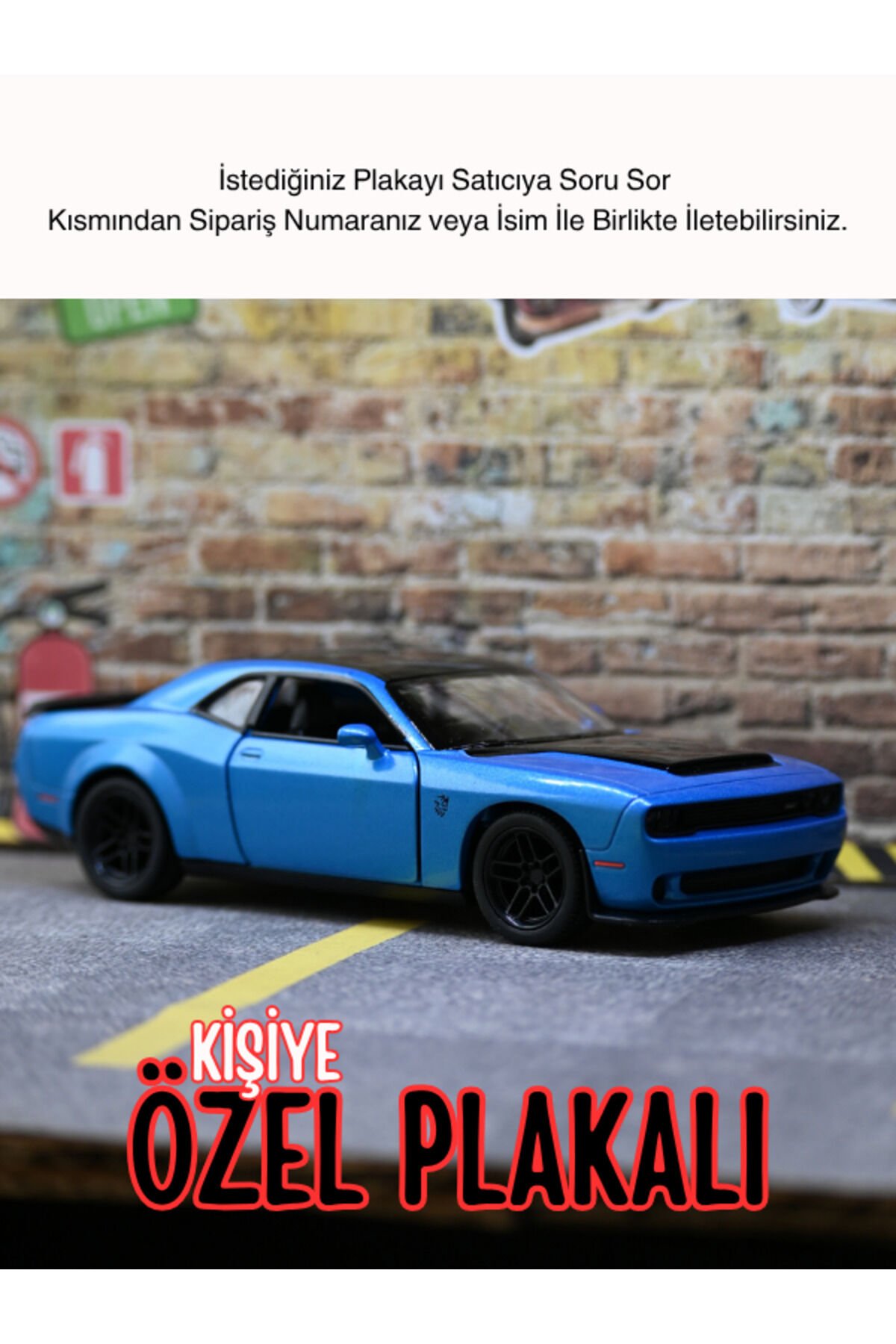 - Kişiye özel hediye plakası ile birlikte gelen Dodge Challenger, sevdiklerinize unutulmaz bir hediye seçeneği sunar.; - Mavi renk seçeneğiyle dikkat çeken bu metal oyuncak araba, koleksiyonunuza şık bir dokunuş katacaktır.; - CN menşeli olup, Çin'de üretilen bu ürün, kalite ve dayanıklılığı bir arada sunar.;