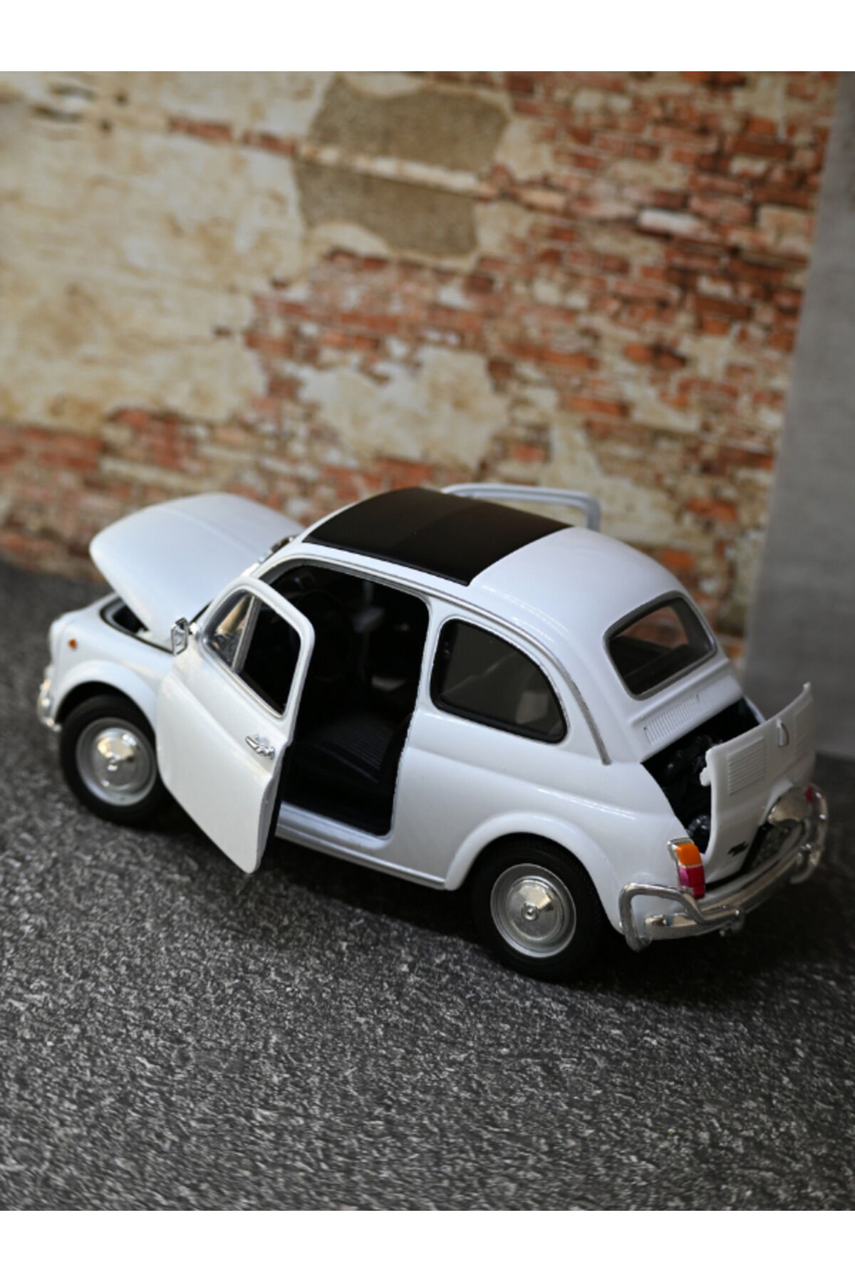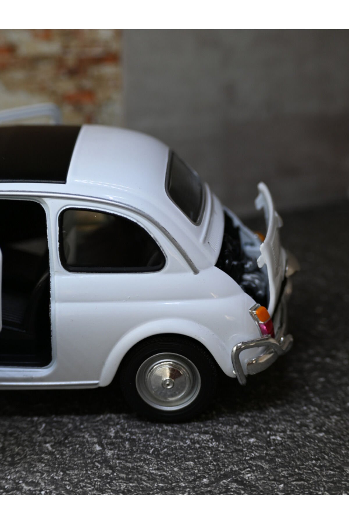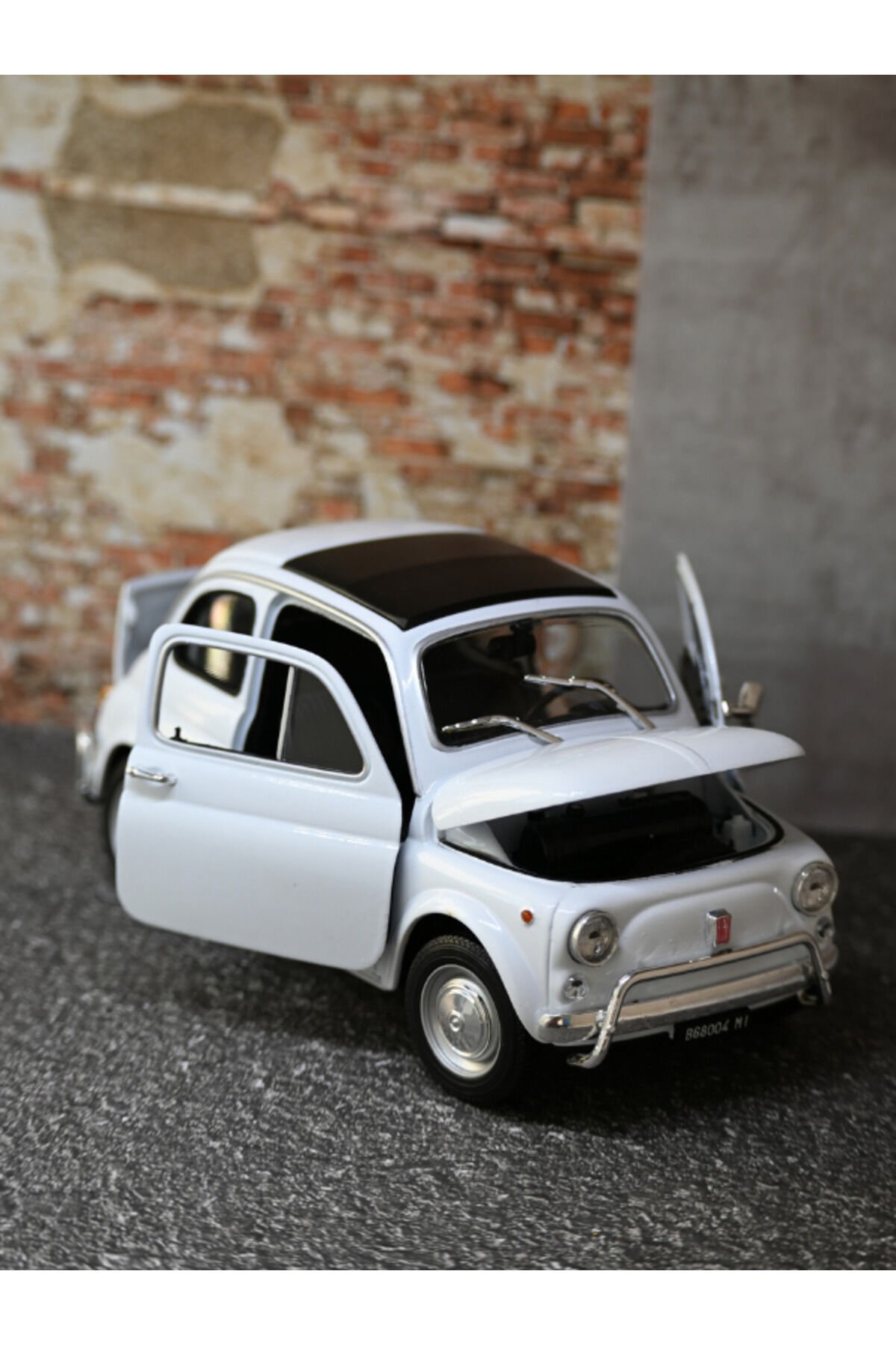 - 1957 Fiat Nuova 500 modelinin detaylı ve gerçekçi tasarımı, otomobil tutkunlarının beğenisine sunuluyor.; - 1:18 ölçekli bu model araç, Fiat Nuova 500'ün orijinal özelliklerini koruyarak, koleksiyonlarınıza nostaljik bir dokunuş katıyor.; - CN menşeli bu ürün, kaliteli işçilik ve malzeme kullanımıyla dikkat çekiyor.; - Nemli bir bezle kolayca temizlenebilen yapısı sayesinde uzun süreli kullanım için idealdir.;