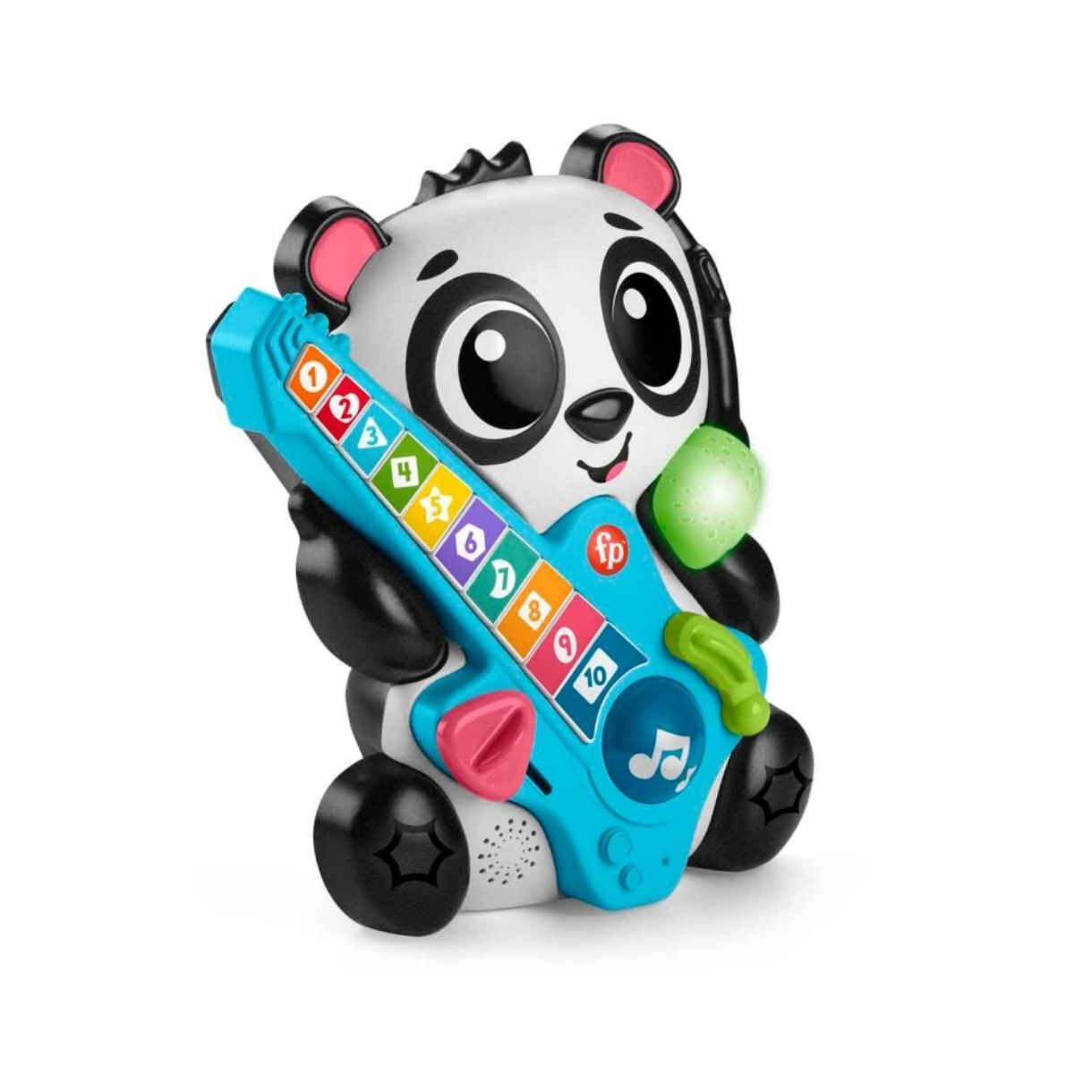 Fisher-Price Link Squad İlk Sayılarım Panda, çocukların gitardaki renkli 10 düğmeye bastığında veya topu döndürdüğünde canlanır! Panda'nın mikrofonu, sayı sayma, farklı ifadeler, şarkılar ve sesler ritme ayak uyduracak şekilde ışıldar. Bu interaktif özellik, çocukların hem görsel hem de işitsel duyularını harekete geçirir ve sayı öğrenimini daha sürükleyici hale getirir. Bebeym.com, duyusal gelişimi destekleyen oyuncakları sunar.