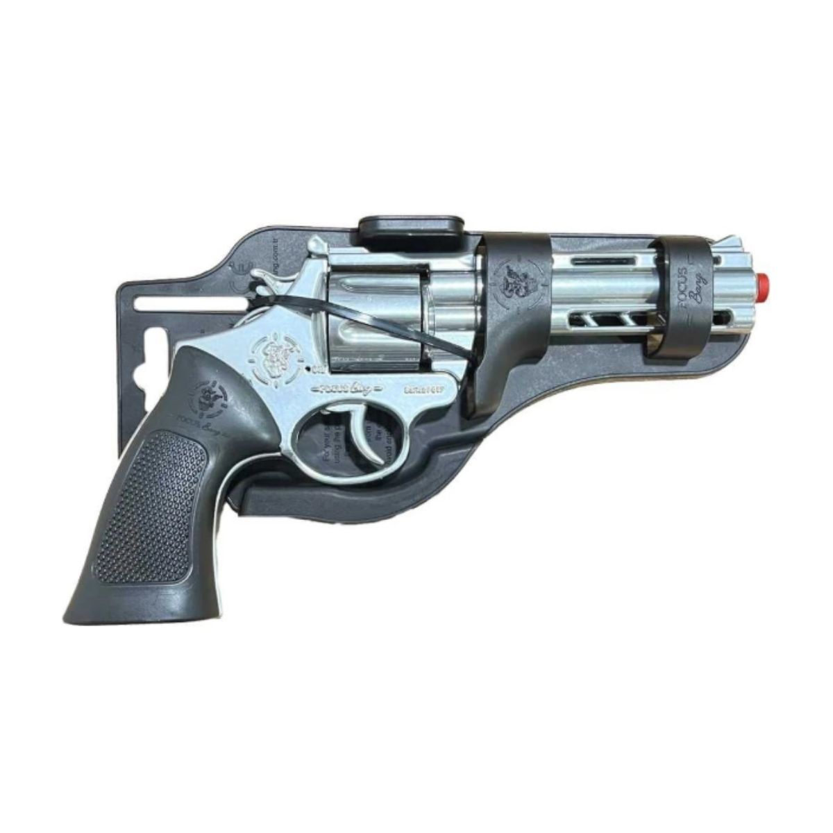 Focus Bang Kapsüllü Tabanca 017 Krom Metal Kılıflı, kapsül mekanizması sayesinde çıkardığı gerçekçi seslerle çocukların hayal dünyasındaki maceraları gerçeğe dönüştürüyor. Krom kaplamalı gövdesi ile dikkat çeken bu oyuncak, dayanıklı yapısıyla uzun süreli bir oyun deneyimi vadediyor.