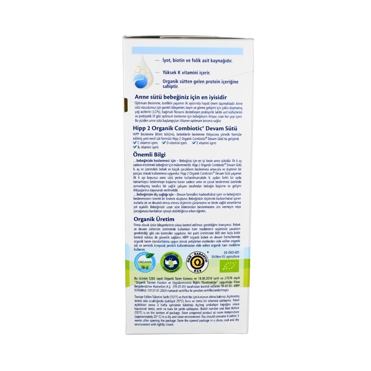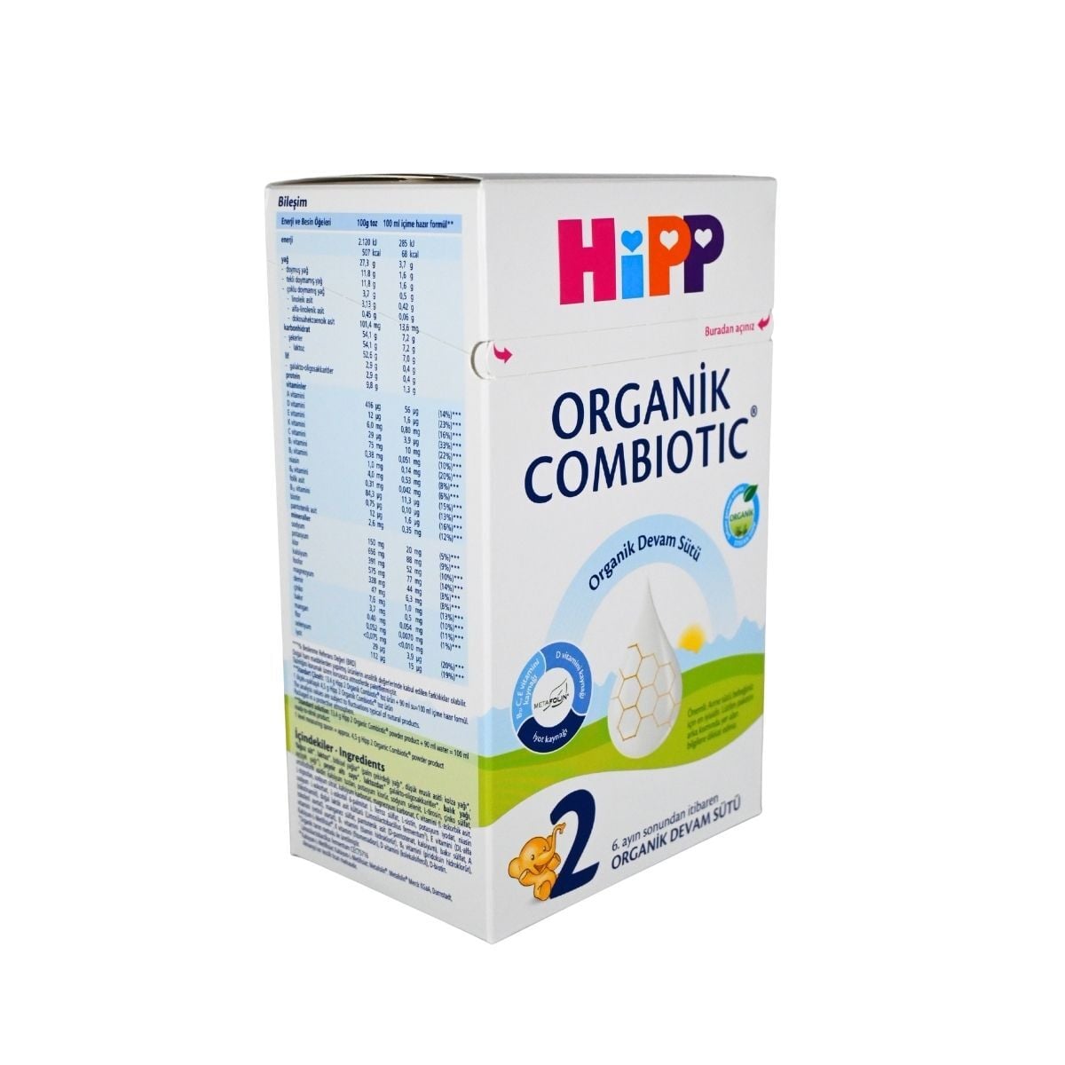 Evet, Hipp 2 Combiotic tamamen organik içerikli olup, hiçbir aşamasında kimyasal gübre veya hormon kullanılmamış ham maddelerden üretilir.