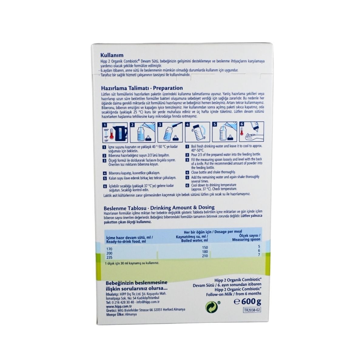 Hipp 2 Combiotic Bebek Sütü 600 gr