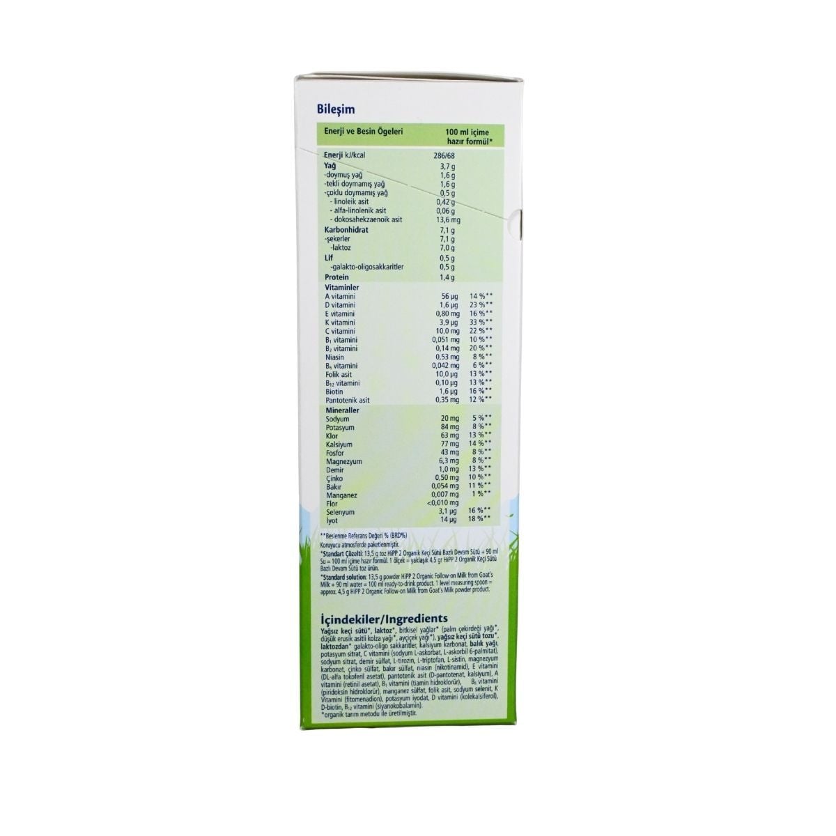Hipp 2 Keçi Sütlü mama ilave şeker içermez. Karbonhidrat kaynağı olarak organik laktoz ve doyuruculuk için organik nişasta içerebilir.