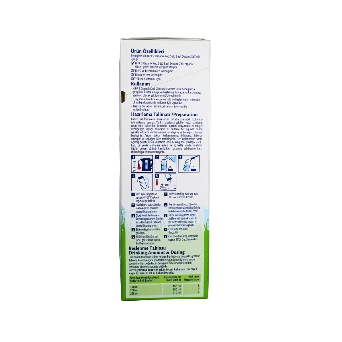 Hipp 2 Keçi Sütlü Bebek Sütü, bebeklerin 6. ayını doldurmasından itibaren 9. ayın sonuna kadar olan dönemde kullanıma uygundur.