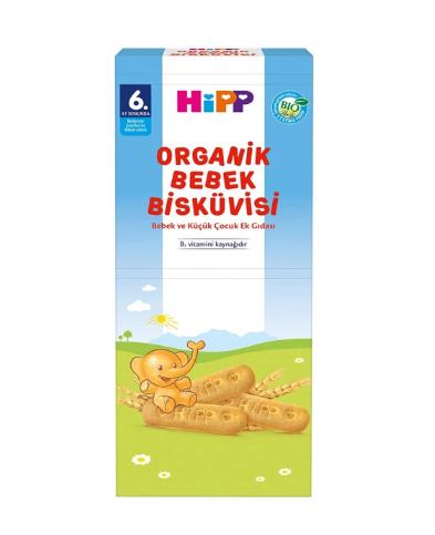 Hipp Organik Bebek Bisküvisi 180 gr x 6 adet, 6. aydan itibaren bebeklerin ek gıda dönemine geçişini desteklemek amacıyla özel olarak üretilmiştir. Organik sertifikalı içerikleriyle güvenli bir atıştırmalık sunar. Bisküviler, bebeklerin küçük elleriyle kolayca kavrayabileceği boyutta olup, hem çiğneme alışkanlığının gelişimine yardımcı olur hem de damak tadının oluşmasına katkı sağlar. Gerek tek başına tüketilerek gerekse süt ya da meyve suyuyla karıştırılarak yumuşatılıp kaşıkla verilebilir.