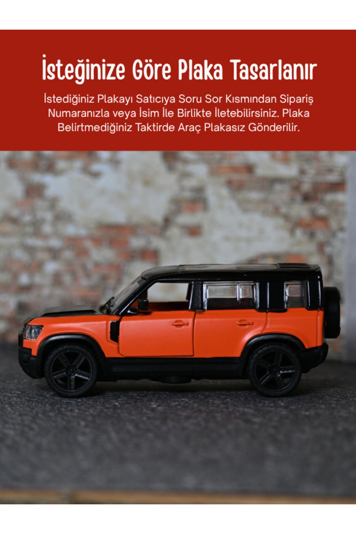 - Nemli bir bezle kolayca temizlenebilir, böylece Land Rover Defender Metal Oyuncak Araba'nız her zaman yeni gibi kalır.; - Kişiye özel hediye plakası ile sevdiklerinize unutulmaz bir hediye sunar.; - Turuncu renk seçeneğiyle dikkat çekici ve canlı bir görünüm sağlar.; - CN (Çin) menşei, kaliteli işçilik ve dayanıklılık vaat eder.;