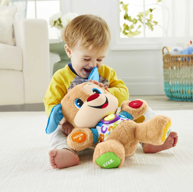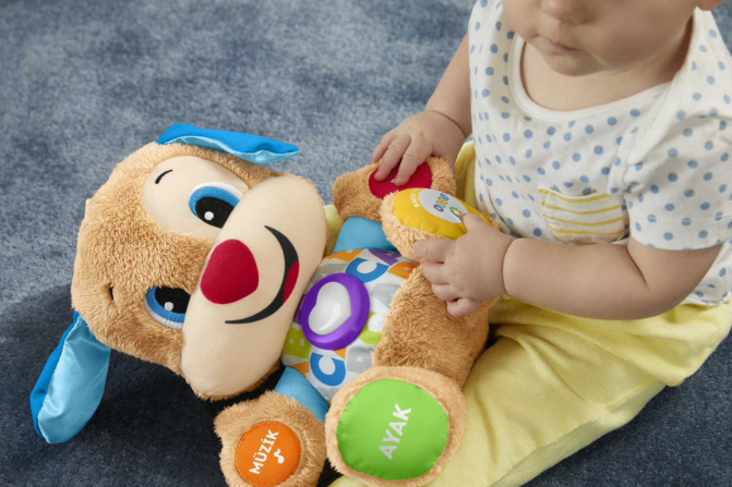Eğitici Köpekçik'e merhaba deyin! Yumuşacık köpekçik ile oyun ile öğrenme bir arada. Eğitici Köpekçik her zamanki gibi bebeğinizin dokunuşlarına eğlenceli şeyler söyleyerek cevap veren veya şarkılar çalan, yumuşak ve sevimli bir köpekçik. Bebeğinize 100'den fazla ilk kelimeyi, vücudun bölümlerini, renkleri, şekilleri ve daha fazlasını tanıtır! Her bebek kendi hızında geliştir. Eğitici Köpekçik, Yaşa Göre Gelişim™ teknolojisine sahiptir. Böylece, çocuğunuz için en uygun seviyeyi seçebilirsiniz. Her üç oyun seviyesinde de çeşitli şarkılar, sesler ve cümleler bulunur. Üstelik, Köpekçik'in ışıklı ve çok renkli kalbi müzikle birlikte yanıp söner. 1. Seviye - Keşfetme – Bebeğiniz, ilk kelimelerini, renkleri, alfabeyi, vücudun bölümlerini ve daha fazlasını dinlemek için Köpekçik'in el, ayak, kalp, burun veya kulağına basabilir! Temel sözcükler ve sesler bebeğinizde merak uyandırır ve bebeğiniz keşfetmeye başlar. 2. Seviye - Teşvik Etme - Eğlenceli cümleler, bebeğinizi birlikte saymaya, renkleri bulmaya ve vücudun bölümlerini tanımaya teşvik eder! Bebeğinizi basit sorular ve talimatlarla harekete geçirir. Level 3 – Taklit etme – Köpekçik, çocukların kelime hazinesini geliştirir. Hayal gücünü kullanmaya ve taklit oyunu oynamaya teşvik eder. Onu hayal gücü yüksek oyunlarla eğlendirirken, şarkılar ve cümlelerle taklit etme oyununa eşlik eder!