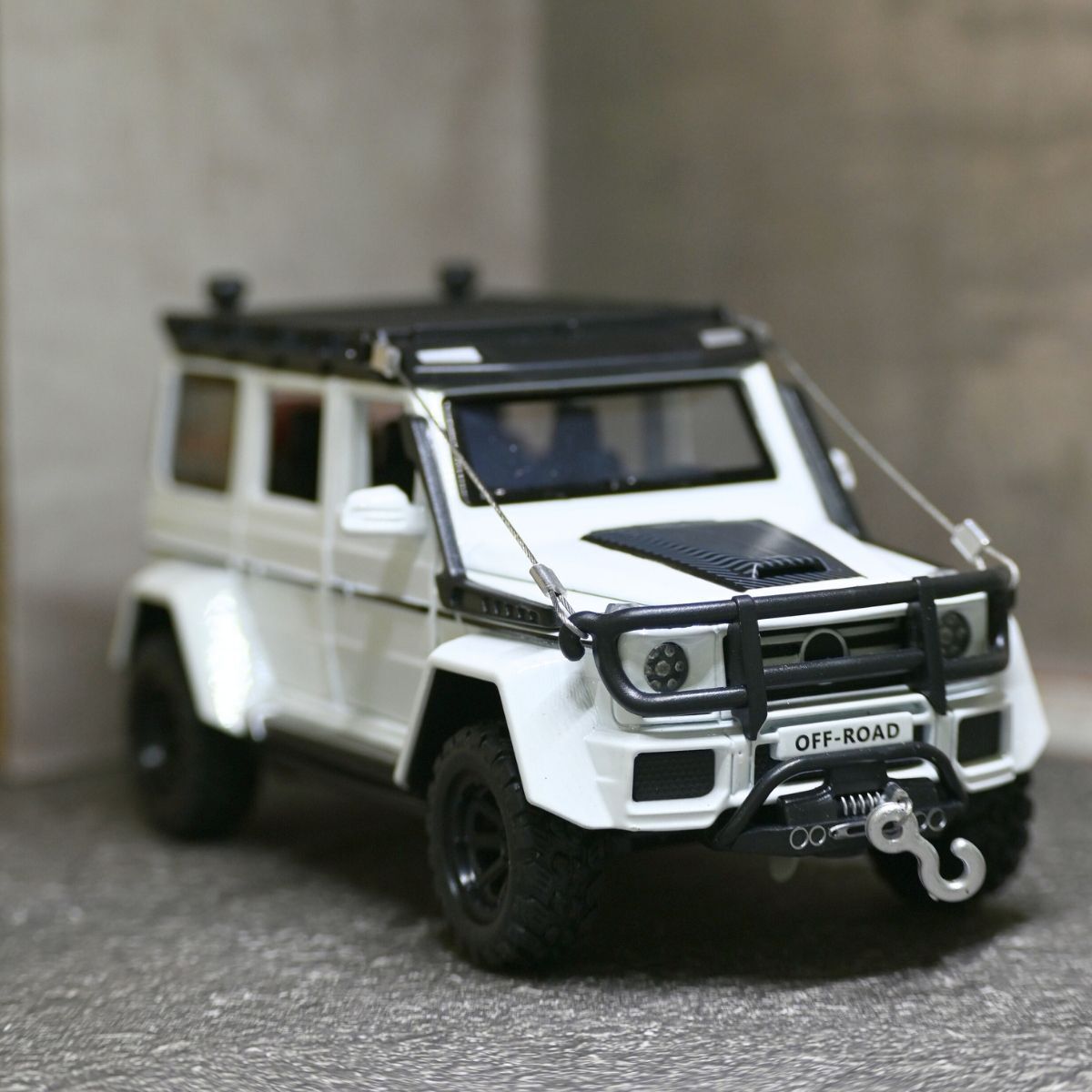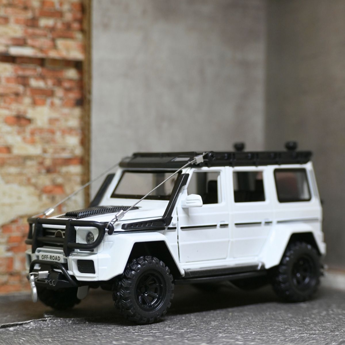 Otomobil dünyasının "Kutusu" olarak bilinen ve yıllara meydan okuyan ikonik tasarımıyla hayranlık uyandıran Mercedes G-Kasa, şimdi 1:32 ölçekli Off-Road versiyonuyla karşınızda! Saf beyaz rengiyle şıklığı, devasa tekerlekleri ve metal gövdesiyle gücü temsil eden bu model, hem engebeli oyun sahalarının hem de en seçkin koleksiyon raflarının başrol oyuncusu olacak.