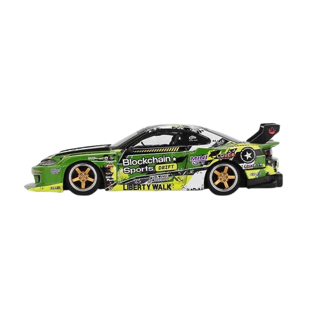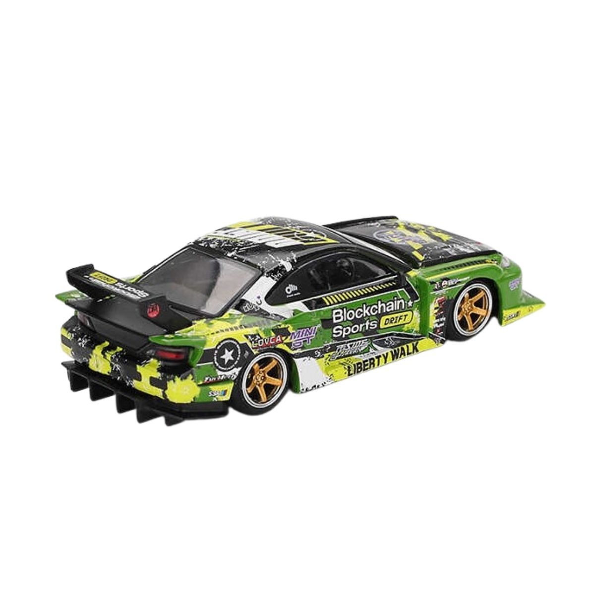 Efsanevi Liberty Walk dokunuşuyla geçmişin ralli ve pist ruhu modern dünyada hayat buluyor! Mini GT Nissan Super Silhouette S15 Silvia, 80'li yılların meşhur "Super Silhouette" yarış araçlarına saygı duruşu niteliğinde tasarlanan devasa gövde kitiyle koleksiyonunuza geliyor. 1:64 ölçekli bu metal model, standart bir S15'ten çok daha fazlası; tam bir modifiye ikonu!