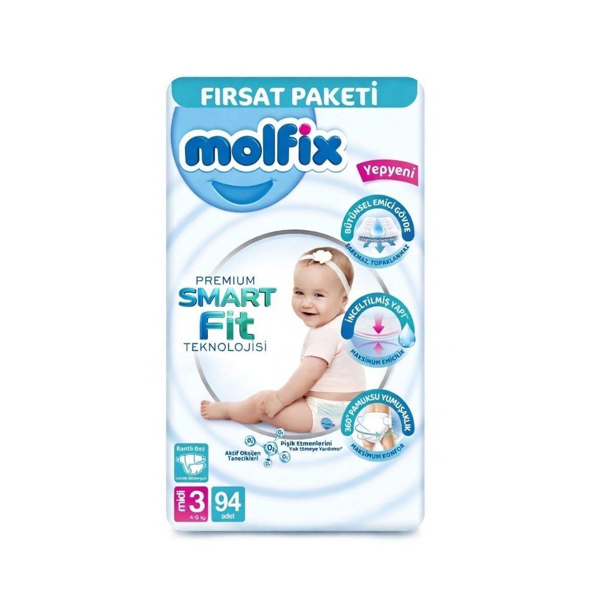 Molfix 3 Numara Midi Premium Ultra Fırsat Cırtlı Bebek Bezi 94 Adet