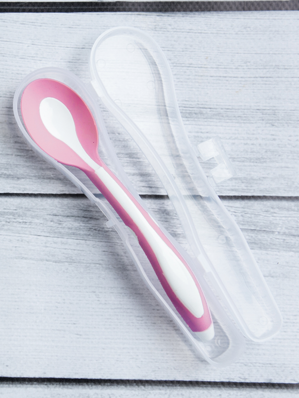 Mycey Taşıma Kutulu Mama Kaşığı - Yumuşak Uçlu - Pembe