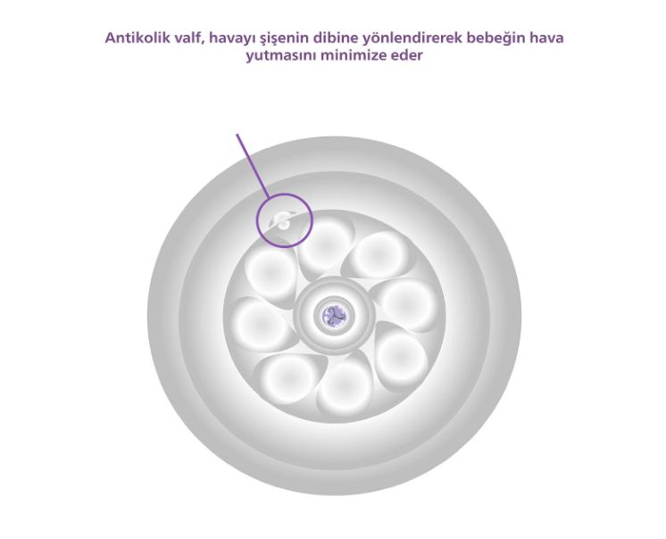 - Bebeğinizin midesinde hava birikimini en aza indiren ve kolik riskini azaltan anti-kolik teknolojisi, beslenme sırasında bebeğinizin konforunu maksimize eder.