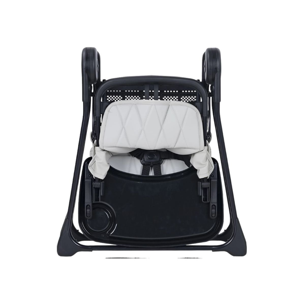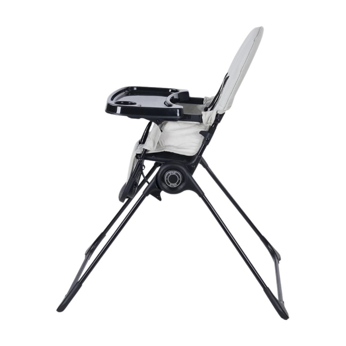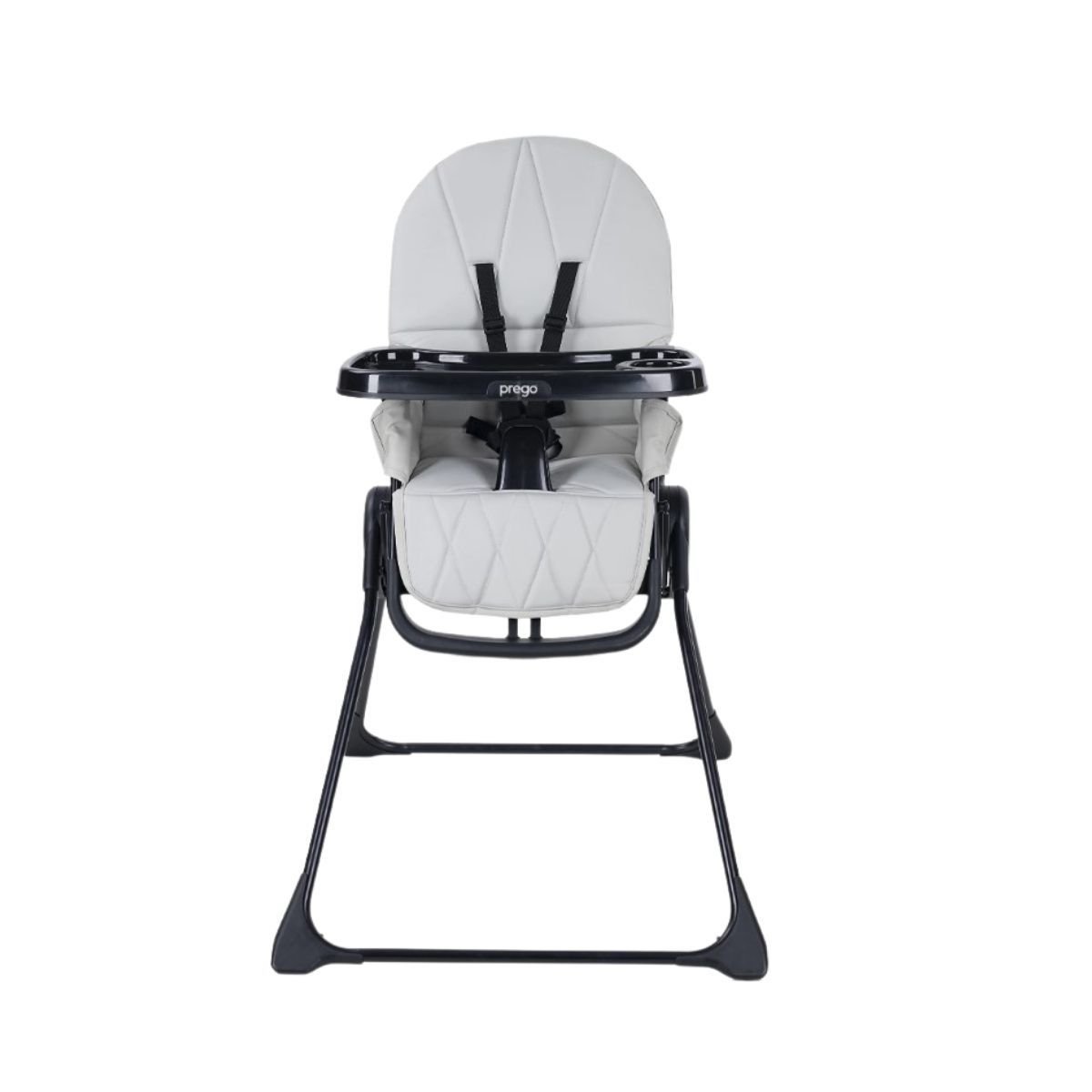 Adding to its space-saving design, the Prego Aris high chair boasts the convenient feature of being able to fold even with the food tray attached. This eliminates the need to detach the tray before folding, streamlining the process and making it even more practical for storage in tight spaces or for transportation. When folded, the high chair occupies minimal space, making it an excellent choice for families with limited room.