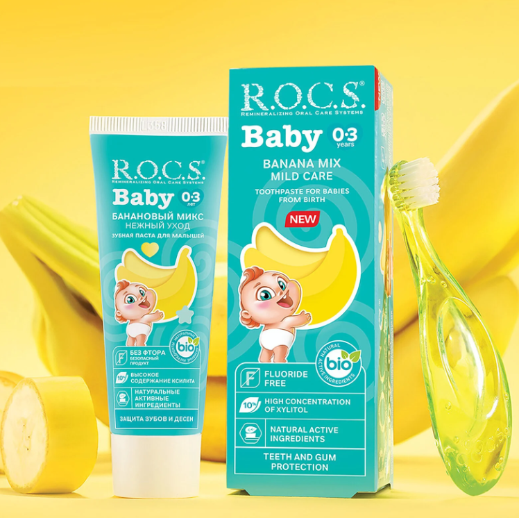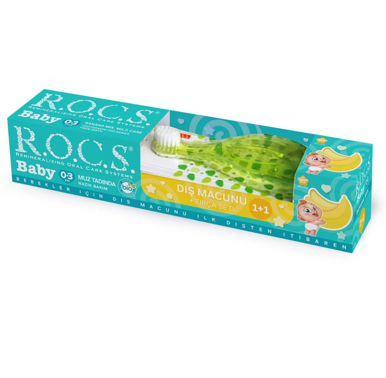 - ROCS Baby 0-3 Yaş Muz Tadında Diş Macunu, Bebeğiniz ilk dişinin çıkmasıyla birlikte ilk diş macununa ve ilk diş fırçasına sahip olmalıdır.