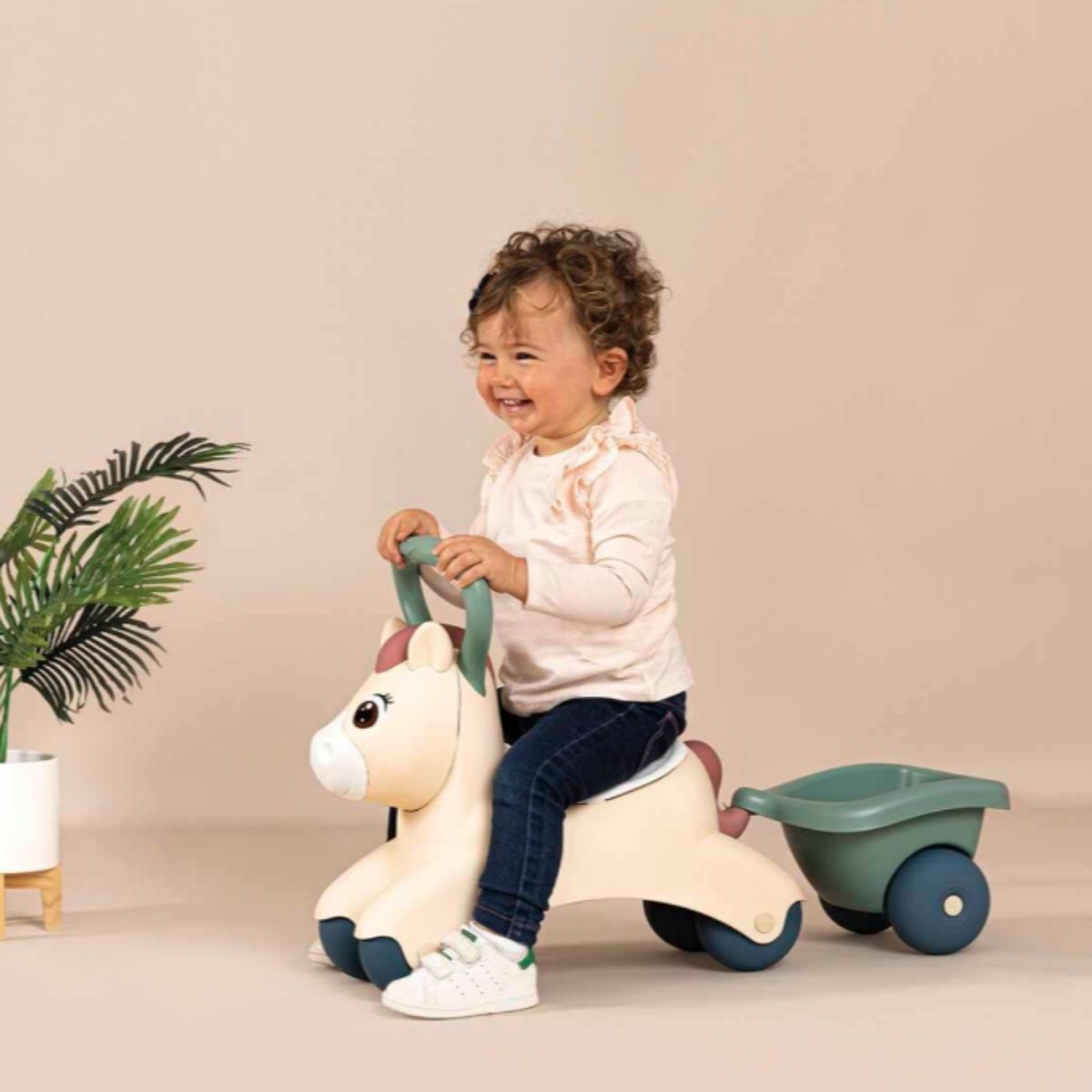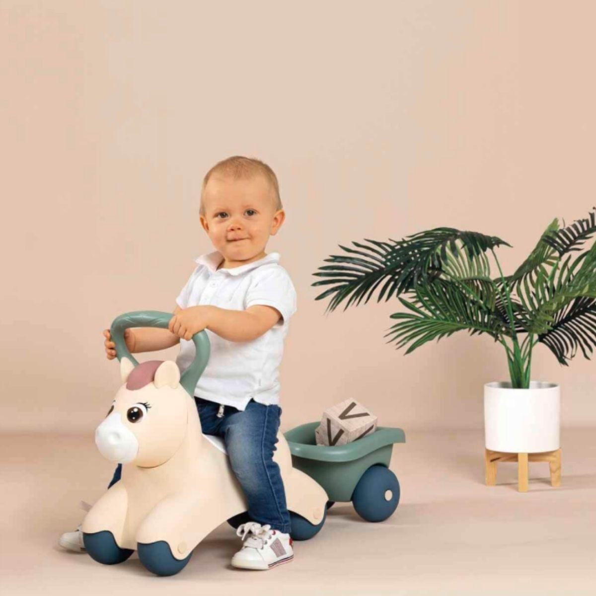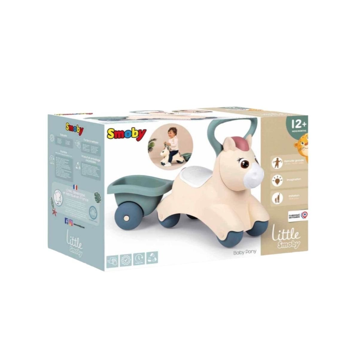 Bebeym.com güvencesiyle sunduğumuz bu Smoby Baby Pony, çocukların en sevdiği oyuncağı olmaya aday. Arkadaki tutma kolu sayesinde bebeğiniz ilk adımlarını atarken ona destek olur, oturduğunda ise keyifli bir sürüş deneyimi yaşatır.