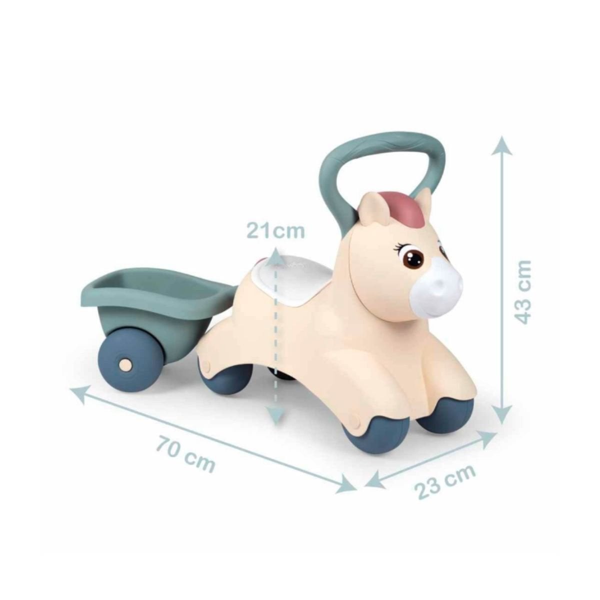 Bebeklerin fiziksel gelişimini desteklemek amacıyla tasarlanan bu araç, hem bir bin-git arabası hem de yürüme aşamasındaki minikler için denge desteği sunar. Smoby'nin yüksek kalite standartlarıyla üretilen Baby Pony, çocukların bacak kaslarını güçlendirirken kendi başlarına hareket etme özgürlüğünü keşfetmelerini sağlar.