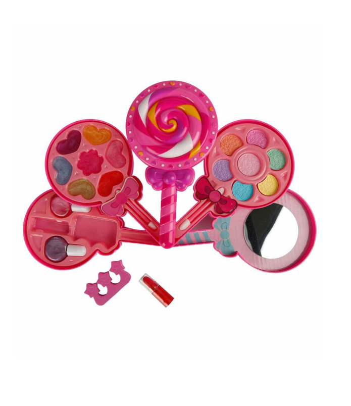 Pretty Pinky Lolipop Şekilli 4 Katlı Makyaj Seti ile minik prensesler artık daha süslü!