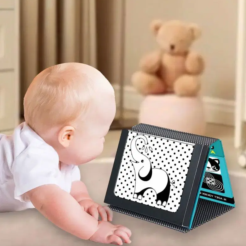 Bu kart seti, siyah-beyaz ve renkli görsellerden oluşan 20 adet kart içerir. Bebeklerin görme yeteneği gelişirken kontrastlı renklerin kullanımı, görsel uyarıyı artırarak beyin gelişimini destekler. Kartların üzerinde hayvanlar, nesneler, geometrik şekiller ve basit desenler bulunur.