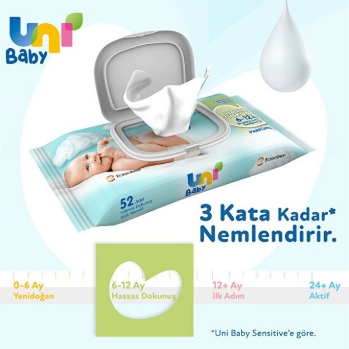 Uni Baby Hassas Dokunuş 6-12 Ay Islak Mendil 52 Yaprak